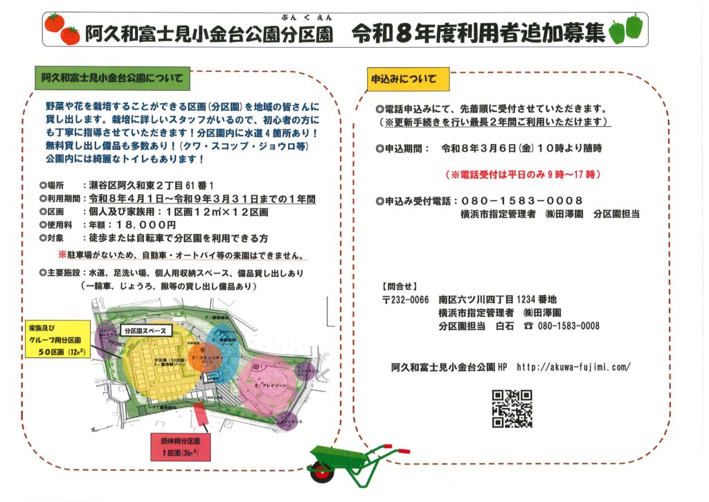 令和8年4月1日からの分区園(畑)の利用者の追加募集を行います!!
